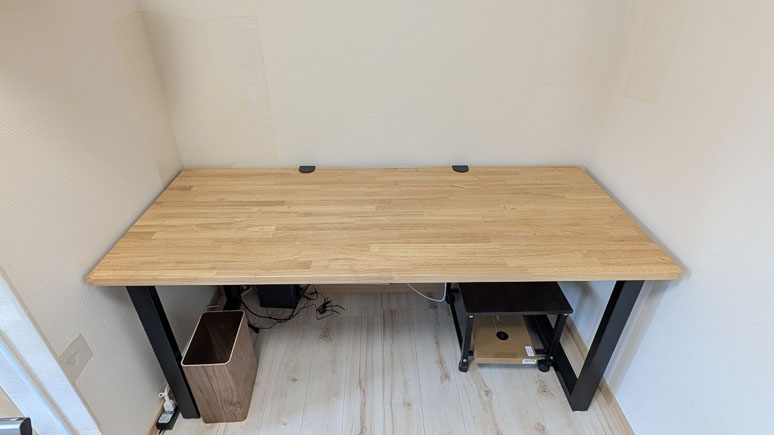 天板の品質は思った以上に良くて大満足です。1cm単位でサイズオーダーできて、幅180cm、奥行き80cmまでだったらどのサイズでも同一料金というのは驚きです。