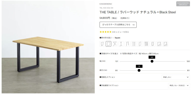 購入したのは THE TABLE / ラバーウッドナチュラル × Black Stell です。